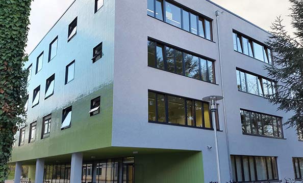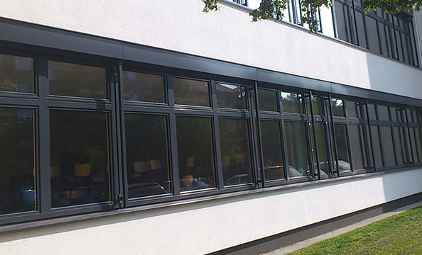 Herstellung und Montage von Holz-Aluminium-Fensterelementen, Lieferung und Montage von P/R-Fassade und Raffstoreanlagen.