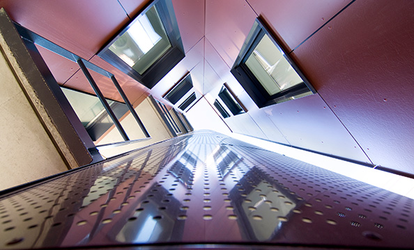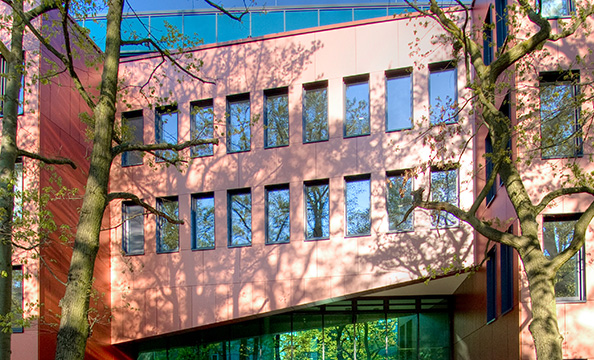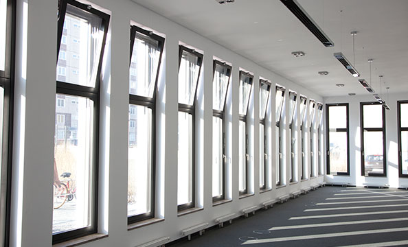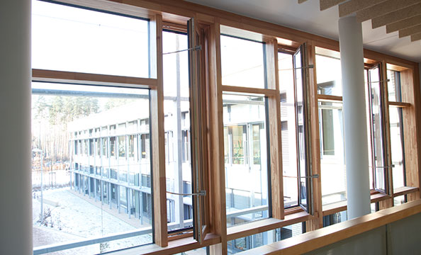 Herstellung und Montage von Holz-Aluminium-Fensterelementen mit integriertem Sonnenschutz, Zertifizierung des Gebäudes nach LEED-Standard.