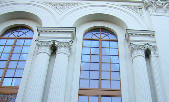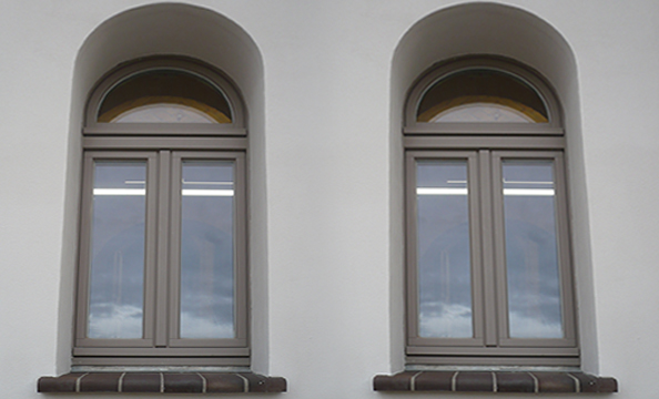 Produktion und Montage von Holz-Fenstern mit Rund- und Stichbogen und Sonnenschutzanlagen.