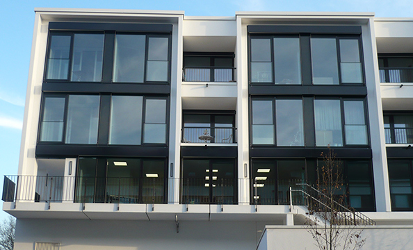 Herstellung und Montage von Holz-Aluminium-Fensterelementen, Lieferung und Montage von P/R-Fassade und Raffstoreanlagen.